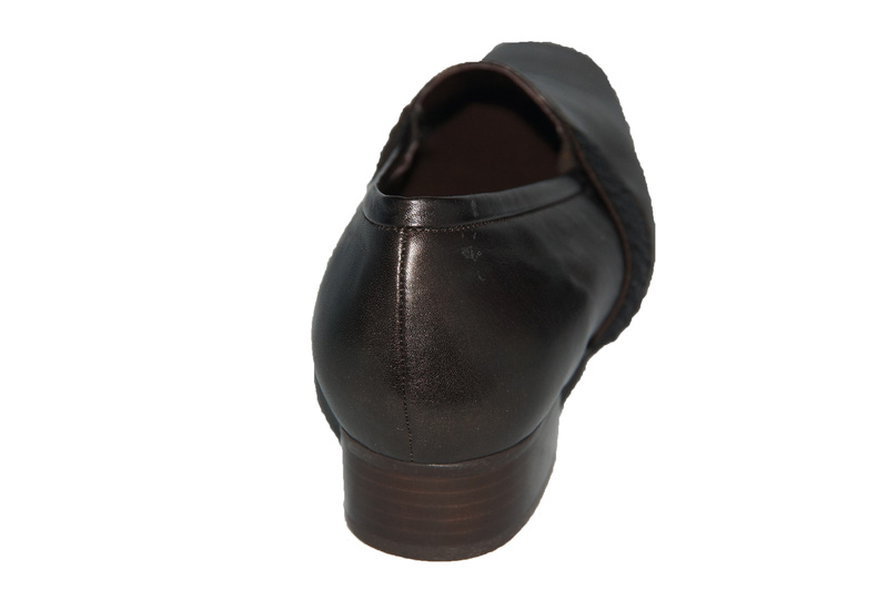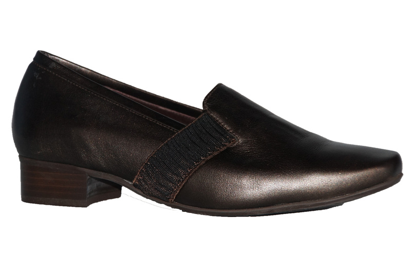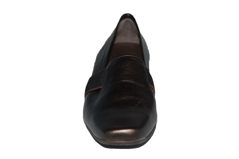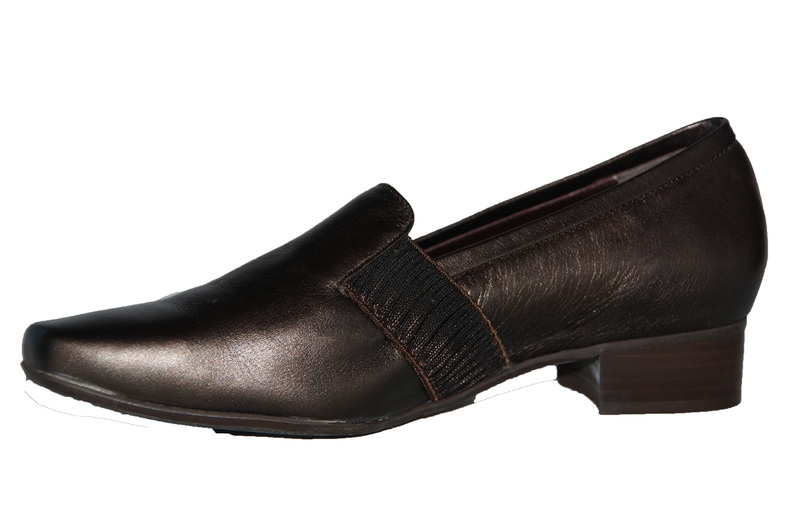 Dames schoen van Verhulst. geheel van leer, een uitneembare zool en een stevige hiel omsluiting. de mooie brons kleur maakt deze schoen draagbaar bij elke kleding kleur.