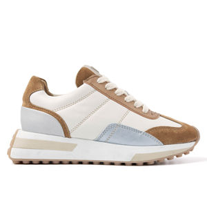 Sneakers met color-blocking; verschillende kleuren en materialen in één model. Comfortabel, trendy en nu in de uitverkoop.
